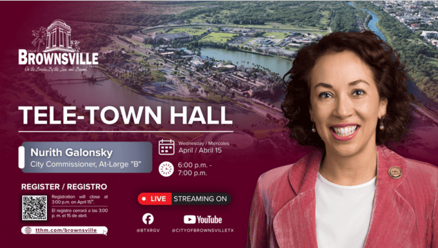 Brownsville City Commissioner At-Large “B,” Nurith Galonsky, is inviting residents to participate in an upcoming live Tele-Town Hall scheduled for Wednesday, April 15 at 6:00 PM