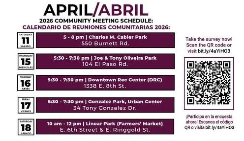 City leaders encourage residents to bring their neighbors, families, and ideas to these sessions to help guide future investments in parks and recreational programming.