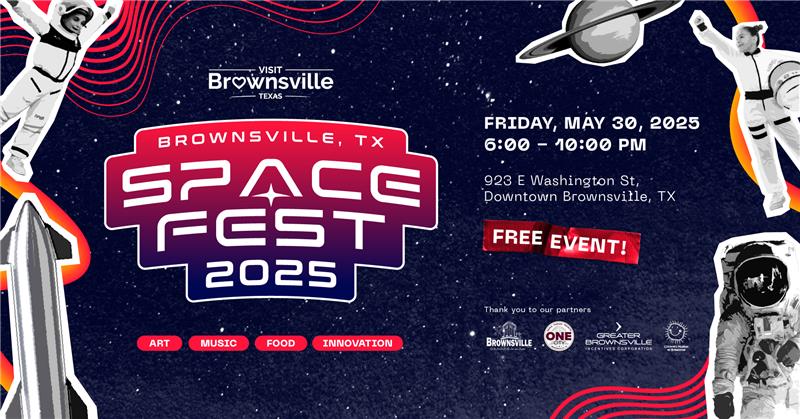 The City of Brownsville (COB), its Convention and Visitors Bureau (CVB) and Office of Space Commerce, in collaboration with its Greater Brownsville Incentives Corporation (GBIC), are set to host the 2nd Annual Brownsville Space Festival. The community event is scheduled for Friday, May 30, 2025, from 6:00 PM to 10:00 PM in downtown Brownsville, spanning more than four blocks from E. 10th Street and E. Washington Street, including the Brownsville George Ramirez Performing Arts Academy – Revival of Cultural Arts (ROCA).