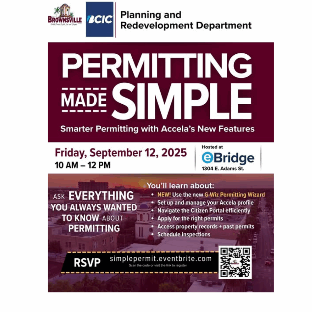 The City of Brownsville is making it easier for residents, contractors, and small business owners to navigate the permitting process. On Friday, September 12, 2025, the City will host “Permitting Made Simple”, a free information session and hands-on training designed to help the community better understand and use the City’s permitting tools.