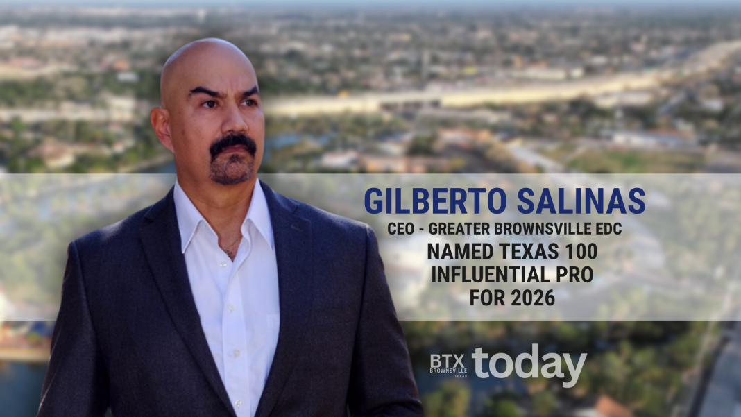 Gilberto Salinas, President and CEO of the Greater Brownsville Incentives Corporation (GBIC), has been recognized as part of the Texas 100: Influential Pros to Know for 2026, an annual list curated by Texas Business Journals that spotlights impactful individuals across the state who are expected to make headlines in the year ahead.