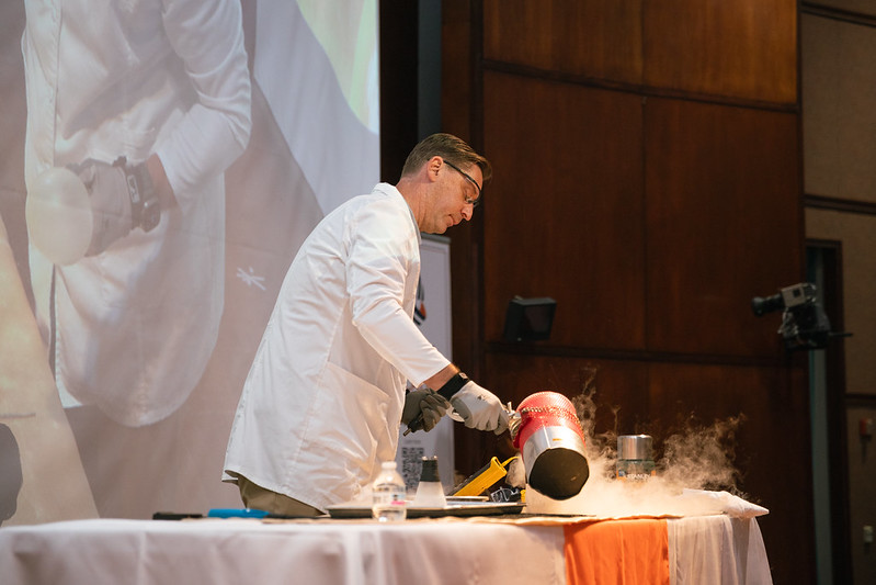 The highlight of the morning was a live demonstration led by engineer Patrick Couch, who explained what LNG is, how it is processed, and the many safety systems that guide its handling. Couch used LNG poured from a small container to showcase its unique properties, even inviting audience members to participate to underscore that LNG can be managed safely when proper procedures are followed. After mixing a concoction of water and LNG in a beaker, Couch boiled off the LNG, and to the astonishment of the audience, drank the ice water that remained to no ill effect.