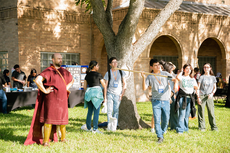 This year’s event also welcomed Texas ACE students from 10 Brownsville ISD schools, who explored a variety of history-themed activity stations across the lawn. Under the supervision of faculty and volunteers, students had the chance to test their aim by throwing spears at targets and watched reenactors demonstrate the cutting power of ancient swords as they sliced through fruit.