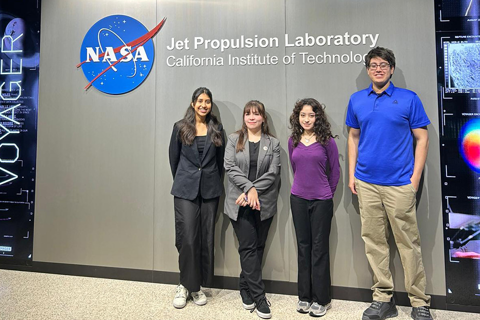 - Jet Propulsion Laboratory: Kiara Garduño Pérez, a master’s student in biochemistry and molecular biology from Lexington, South Carolina; Jazmín Álvarez, a mechanical engineering major from Brownsville, Texas; Odalis Gutiérrez, an environmental science major from Los Fresnos, Texas; and Xaric Ríos, a computer science major from McAllen, Texas.